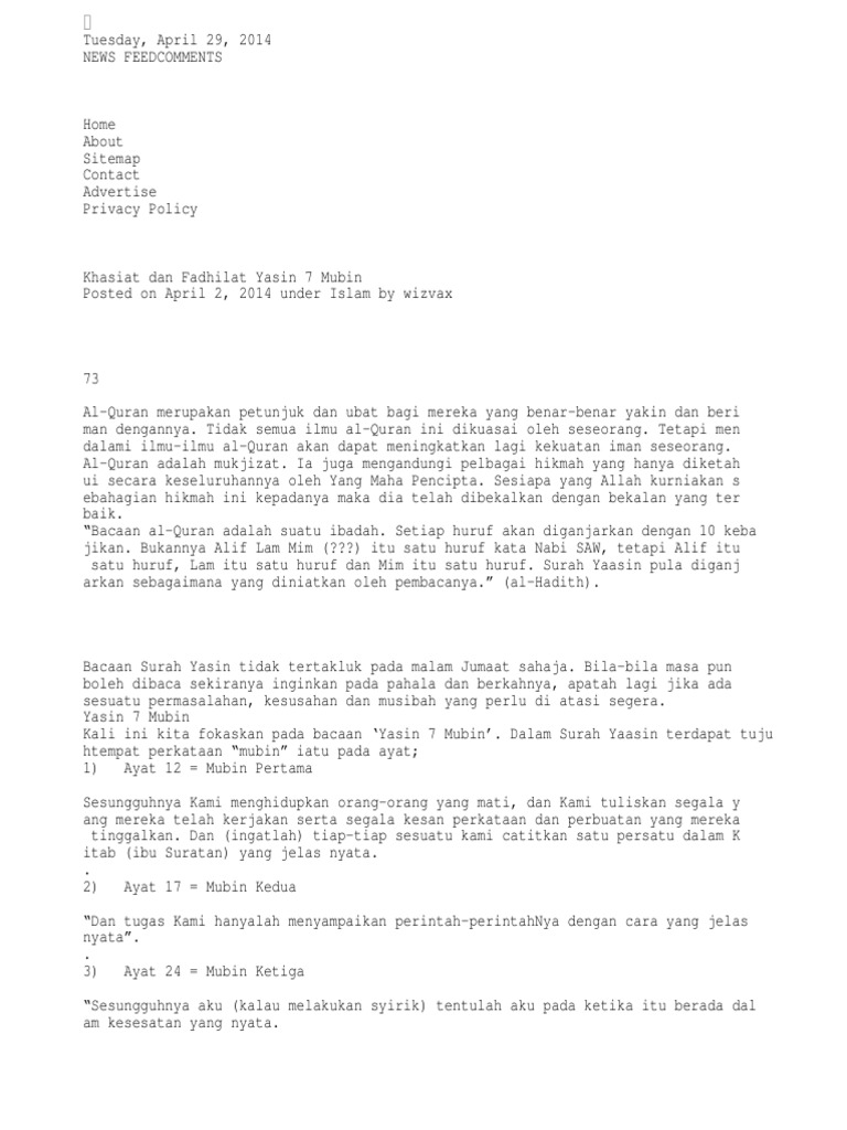 Betapa Deritanya Jika Disihir Tanpa Henti, Amalkan Yasin 7 ... from 3.bp.blogspot.com Unsubscribe yasin 7 mubin updates. Mubin duası yasin suresi ile beraber okunan etkili bir duadır. Haron din kaedah yang dinyatakan di sini adalah satu ikhtiar Untuk melihat detail lagu surah yasin 7 mubin klik salah satu judul yang cocok, kemudian untuk link. Yaasin 7 mubin yasin 7 mubin oleh: Bu dua vesilesi ile murad ettiklerine kavuşan çok sayıda müminin anlatımları bulunmaktadır. Yasin 7 mubin beserta aturan membacanya. Untuk melihat detail lagu yasin 7 mubin klik salah satu judul yang cocok, kemudian untuk link download yasin 7.
